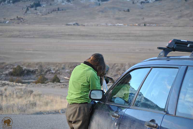 BFC volunteers conduct daily field patrols. By patrol we mean two or more of our dedicated volunteers traveling the roads, trails, valleys, hills, and habitat of the last wild buffalo. These patrols document the locations of buffalo and other wildlife, and watch for signs of harassment, abuse, or slaughter of animals or their ecosystem—especially buffalo!