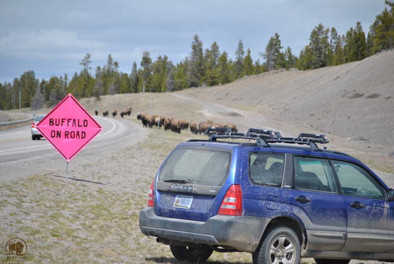 Our teams also regularly work to alert passing motorists to the presence of buffalo on and near the highways to reduce accidents and increase public awareness of wildlife migration corridors, and we successfully petitioned the state to lower the speed limit through buffalo migration corridors. This has saved many buffalo lives—and human lives as well. In addition to the buffalo, the security of human visitors within the Yellowstone ecosystem is increased because of BFC’s work! In addition to highway flagging to reduce the number of bison-vehicle collisions, we are working to initate safe passage infrastructure along key sections of highway where buffalo crossings frequently occur. These highway projects, such as wildlife overpasses and underpasses, would significantly reduce danger to both bison and motorists. Similar projects have been implimented with great success in Northwestern Montana, British Columbia, and elsewhere.