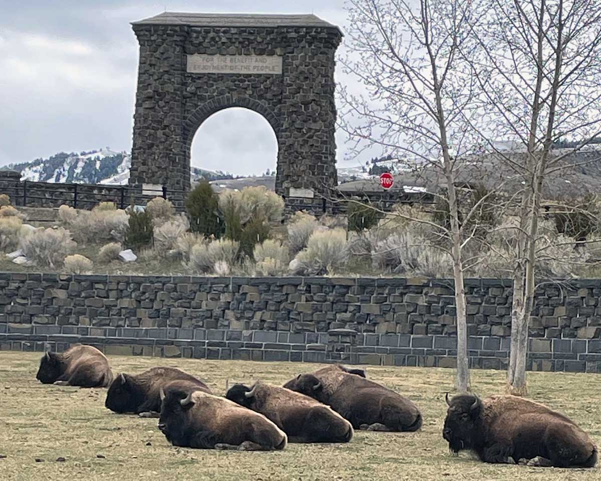 Our last wild bison bed down just outside Yellowstone's north gate, The Arch. As soon as Buffalo leave the park, they are trapped and sent to slaughter or quarantine by Yellowstone NPS.