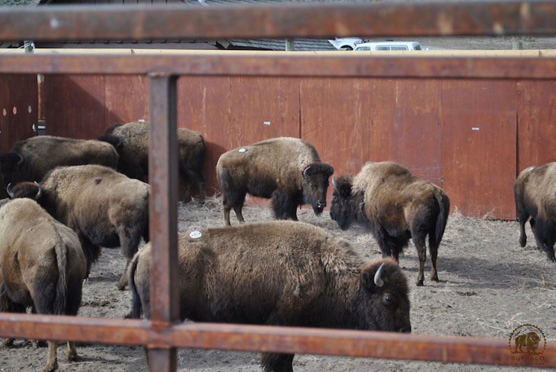 Adult female buffalo inside Yellowstone’s Stephens Creek buffalo trap, 2016. Separated from their families, they are being held until they are loaded onto trailers headed to the slaughter house. Photo by Stephany Seay, Buffalo Field Campaign.