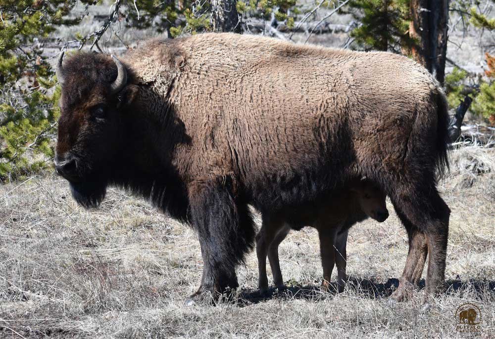 Beltaine Greetings! May is the thrust of wild buffalo calving season, and a few more calves have been spotted here in the Hebgen Basin, with heavily pregnant females promising that this is just the beginning of another wonderful calving season. Because of your unwavering support of BFC over these many years, the year-round habitat you helped us gain for the buffalo is being peacefully enjoyed by them. Montana Department of Livestock agents drive around looking for buffalo, but where they are currently roaming, they can not be touched. Patrols are still busy along the highways, helping buffalo safely reach calving grounds, which is about the only human-caused threat right now. This week, we want to share some images of the few calves who have so far arrived. We promise that as the weeks go by, we’ll have more and better photos of these “little red dogs” to share with you. In the meantime, there are two important things you can do to help these baby buffalo and their families: A) Sign up for our new American Bison E-Newsletter which will help inform you on making effective comments to list wild, migratory buffalo as a Species of Conservation Concern on the Gallatin National Forest, and, B)