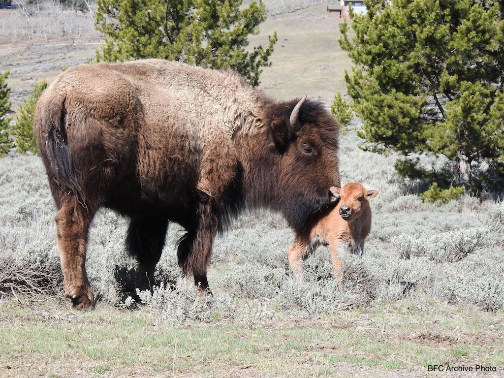 Coexistence is a partnership, one in which people and the buffalo must learn and adapt. With BFC’s help, the migrating buffalo have learned the savvy qualities needed to safely cross the highway. Plenty of buffalo look both ways before crossing the road, a testament to their intelligence and understanding of humans. Buffalo take advantage of Forest service roads to access their habitat on National Forest lands, it is easy travelling for them just like it is for humans. People that live on Horse Butte build fences around their young trees to provide the buffalo with a scratching post to shed their thick winter coats for warmer times, and slow their cars in the neighborhood for the calves just as they would for a neighbor’s child.