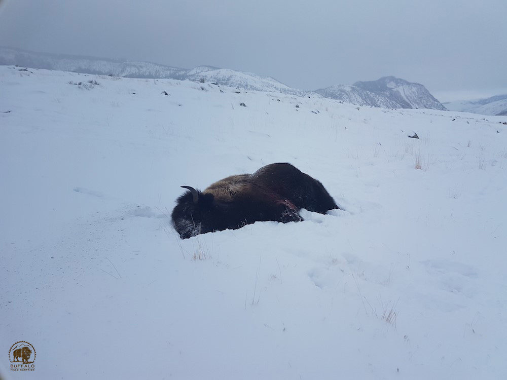 One of the buffalo who was shot, fled into the Park, then died there. Photo by David Steinle-Neumann, Buffalo Field Campaign.
