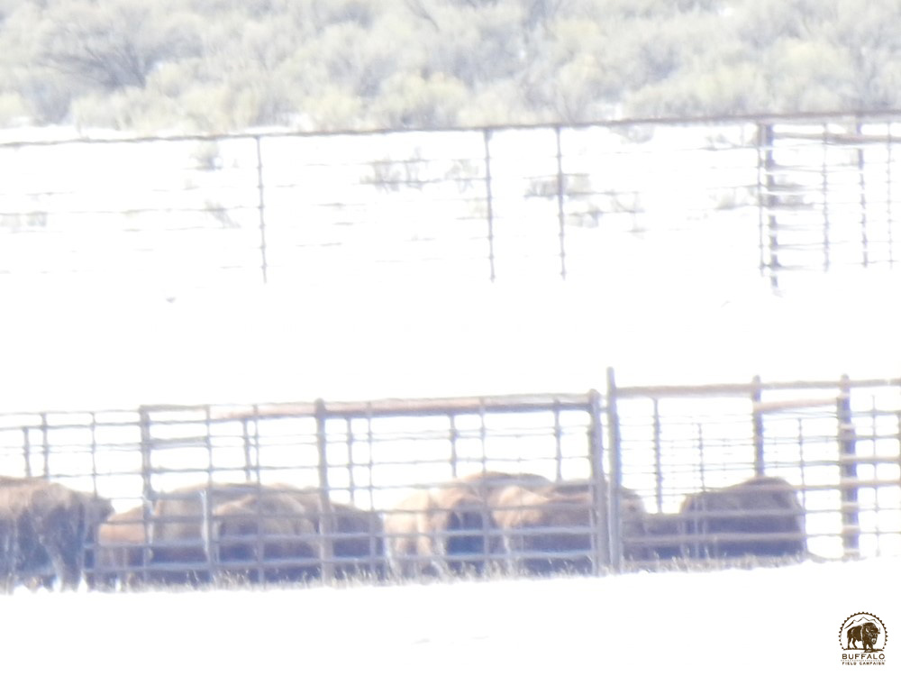 Buffalo clearly within the fence line of Yellowstone’s Stephens Creek buffalo trap. Yellowstone states they have not yet begun capture operations. We are monitoring the situation very closely, and we will have better photos for you soon — we were trying out a new camera with a strong zoom lens. Photo by Greg Marin, Buffalo Field Campaign.