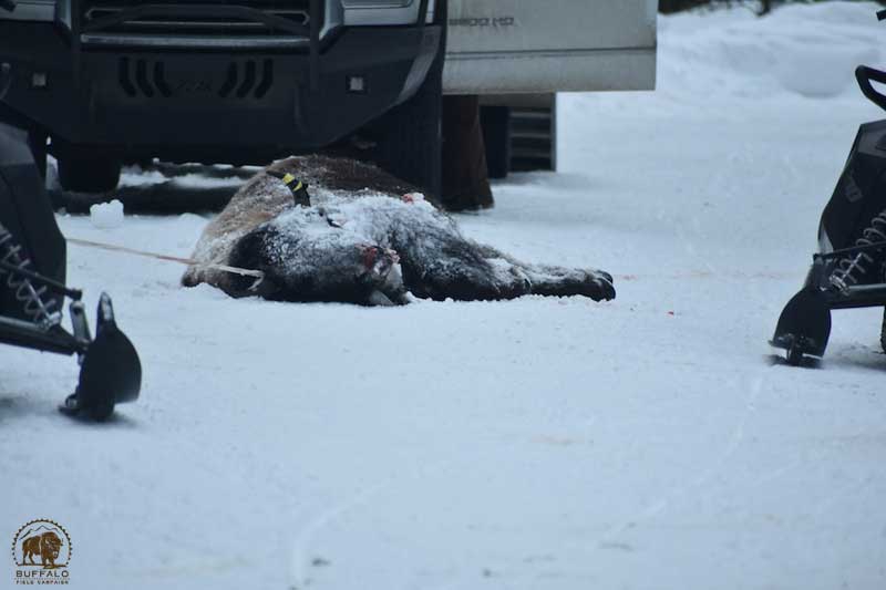 Another female buffalo from the Central herd killed by a hunter. Currently, all the hunting pressure is on this imperiled population. Photo by Stephany Seay, Buffalo Field Campaign.