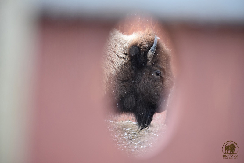 A female buffalo separated from her family group who will all be killed, is held in a sorting pen at Yellowstone’s Stephens Creek buffalo trap, where she waits before being loaded onto a stock trailer that will take her to the slaughter house. BFC photo by Stephany Seay