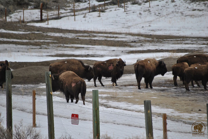 During 2011 more than 600 buffalo were captured and held for nearly five months. Buffalo from both the Northern and Central herds were captured and lived in confinement for so long that buffalo from different family groups — and even different herds — formed strong bonds. It is likely that when they were released, these buffalo stayed together, some leaving their home ranges and families to stay with the new friends. BFC photo by Stephany Seay.